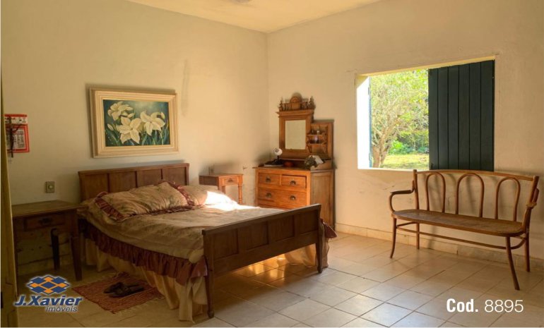 Fazenda em Pedra do Anta - Minas Gerais Localização: TAPERA; Área: 46.58 HA (hectares); Casa sede com 250 m²: - Sala mobiliada; - Varanda frontal; - Copa com cristaleiras, mesa e cadeiras; - 05 Quartos, sendo 01 suíte (mobiliados com camas); - 02 Banheiros sociais; - Cozinha com fogão industrial . Área externa: - 02 Casas de caseiros com 02 quartos, sala e varanda; - Cômodo para manipulação de alimentos com bancadas em granito; - Galinheiro com 1.500 m² telado e com cômodo para postura e abrigo das aves; - 02 Tanques para criação de peixes; - Curral para retirada de leite para 05 cabeças; - Pomar com variedade de frutas em plena produção (Predominância de manga palmer); - 20 mil pés de eucaliptos; - Campo de futebol gramado; - Energia bifásica com 02 transformadores; - Iluminação subterrânea com vários pontos externos de luzes; - Sistema completo de irrigação com bomba, tubulação e sistema de gotejamento. Áreas aproximadas: 10 HA de Mata nativa; 20 HA de Pastagem; 08 HA de Plantio e o restante em eucaliptos. Localização: 2,5 Km da cidade por estrada de terra em boas condições; 2,5 Km do asfalto; 35 Km de Viçosa/MG. Documentação regular; Analisa permuta por imóvel residencial na região centro-sul de Belo Horizonte.